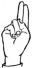 На ћирилици написано КАТАРИНА КОЈОВИЋ састоји се из 15 слова [?]. Исписано ћириличном једноручном азбуком за глувонеме: